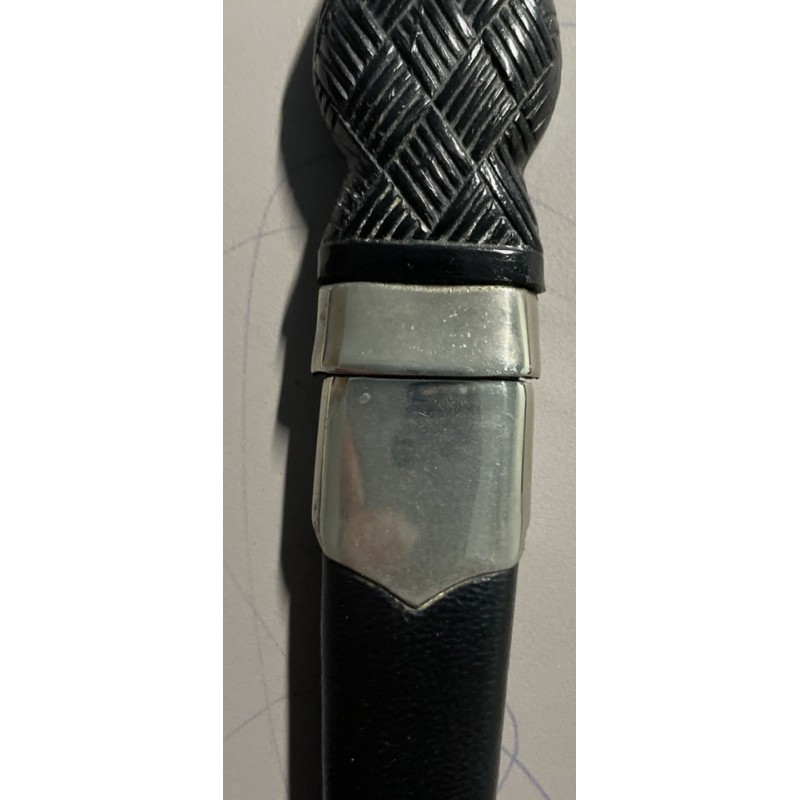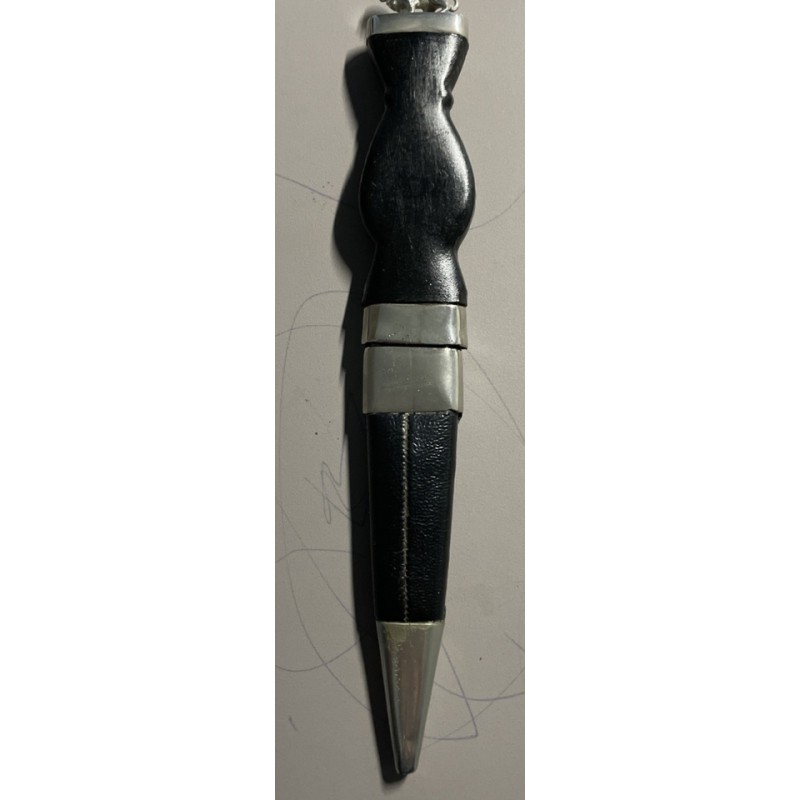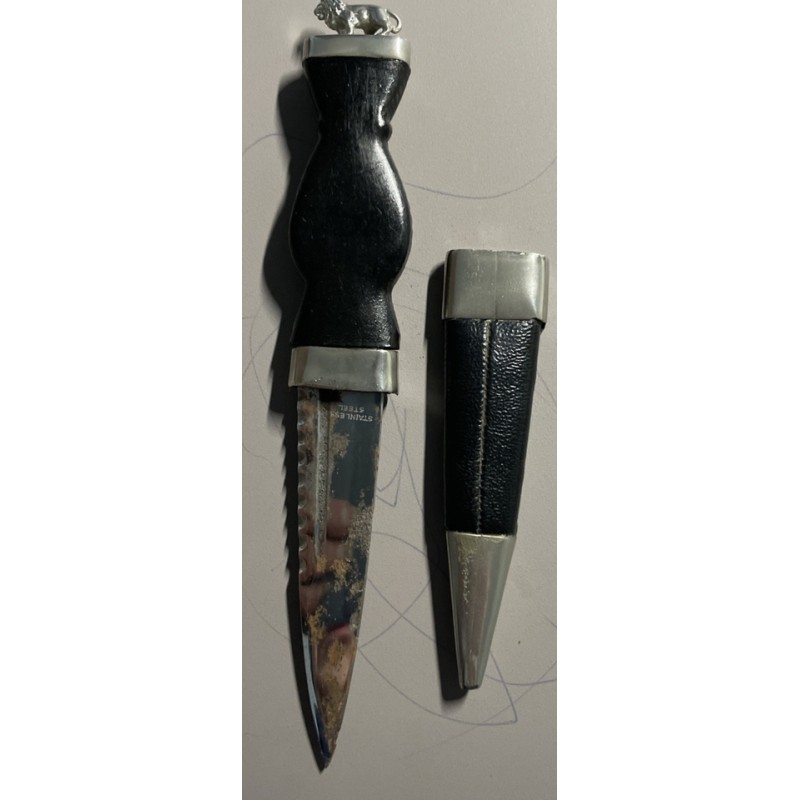 The Scottish Kilt Accessories – Skean Dhu is a stylish accessory set designed for men, featuring a 7" long leather and stainless steel knife. The black and silver colours add a touch of elegance to the traditional Scottish design, making it a perfect addition to any formal or casual outfit. 20 cms long overall.